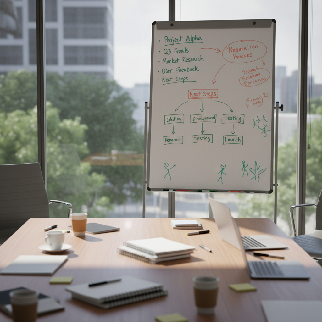 - Określ dalsze kroki — Kto i kiedy podejmuje konkretne działania? Jasność zobowiązań to podstawa.